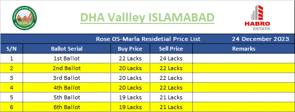 - Non Ballot files in Rose 5 marla residential Plots is at Buying price 13 lacks and Selling Price is going by 14 lacks ( These Prices are for Open Files ).