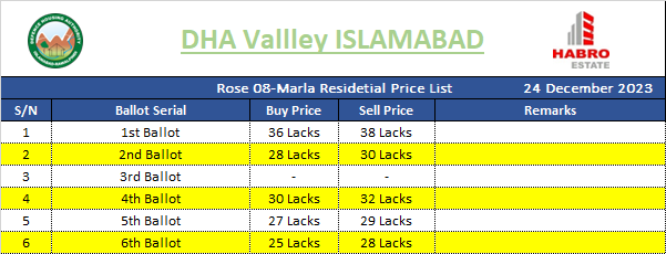 - Non Ballot files in Rose 8 marla residential Plots is at Buying price 16 lacks and Selling Price is going by 18 lacks ( These Prices are for Open Files ).